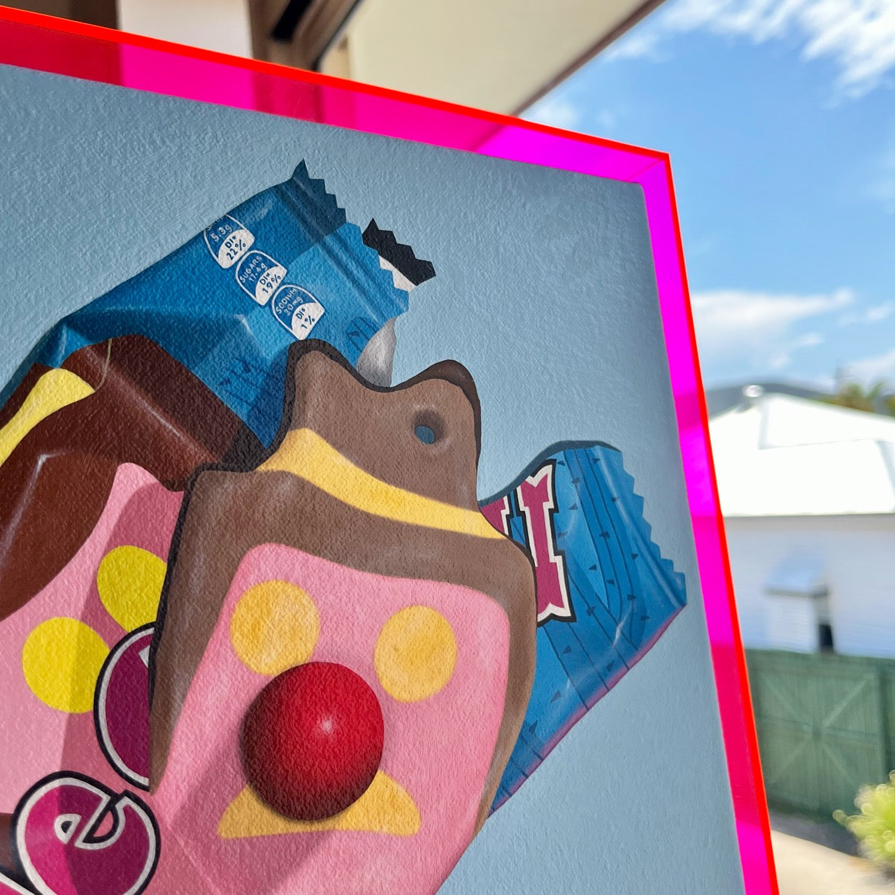 Frame: Fluoro pink acrylic frame.