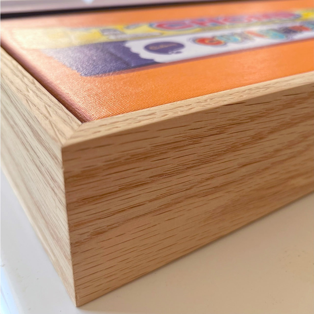 Frame: Natural oak float frame, inside of frame hand painted to match, ready to hang.