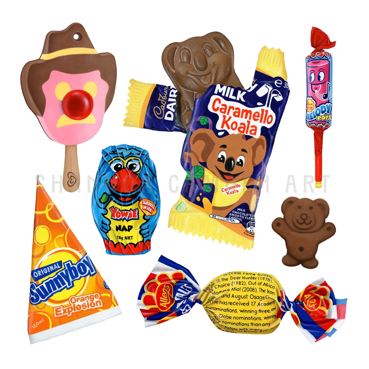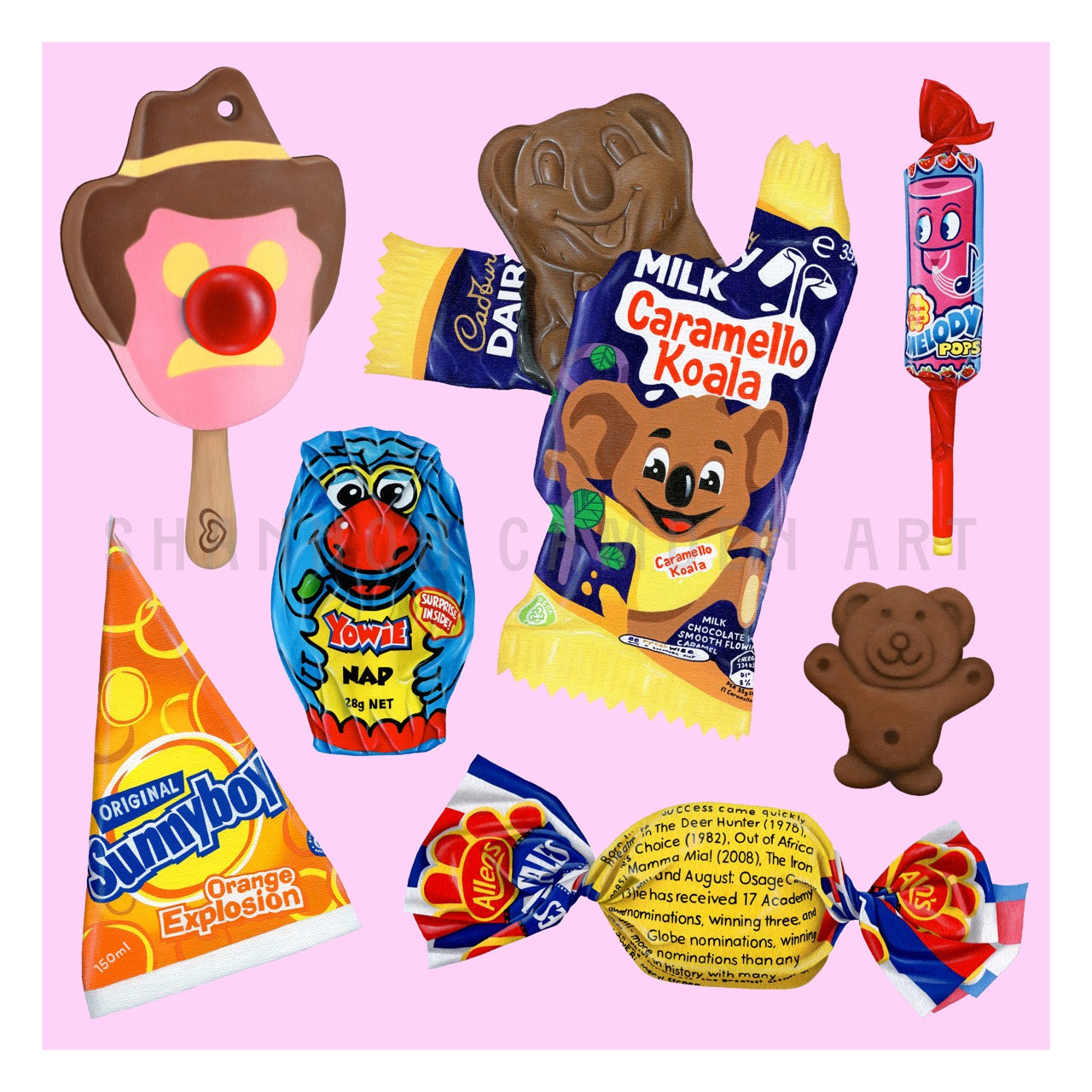 A limited edition print featuring a collection of the classic treats I've painted over the years. Edition of 50. Each print is numbered, titled and signed.